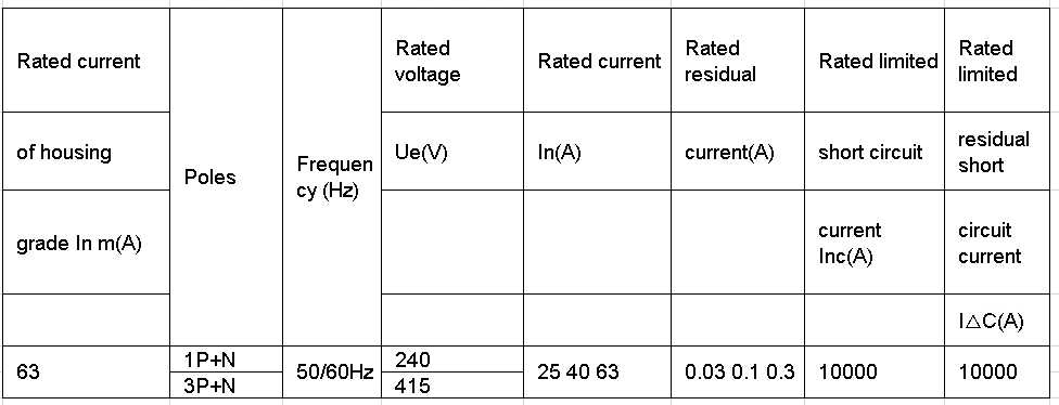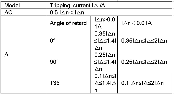 | Scope of residual operating current | 0.5Iâ–³n ~ Iâ–³n |