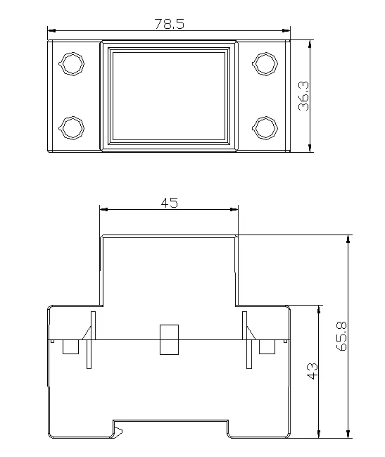 The DIN-rail structure allows fast installation inside electrical panels, making it suitable for standardized metering solutions in commercial and light-industrial environments.