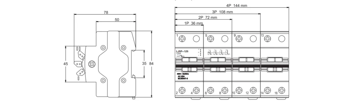 Its modular design makes it fully compatible with compact circuit breakers of the same series, allowing easy integration into standard DIN-rail electrical panels.