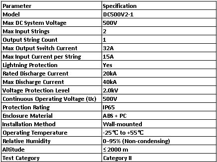 Plastic DC Combiner Box 2 In 1 Out is designed to combine and protect two photovoltaic DC input strings into one output for inverter connection. It provides integrated DC protection and surge protection, making it suitable for residential and commercial solar photovoltaic systems.